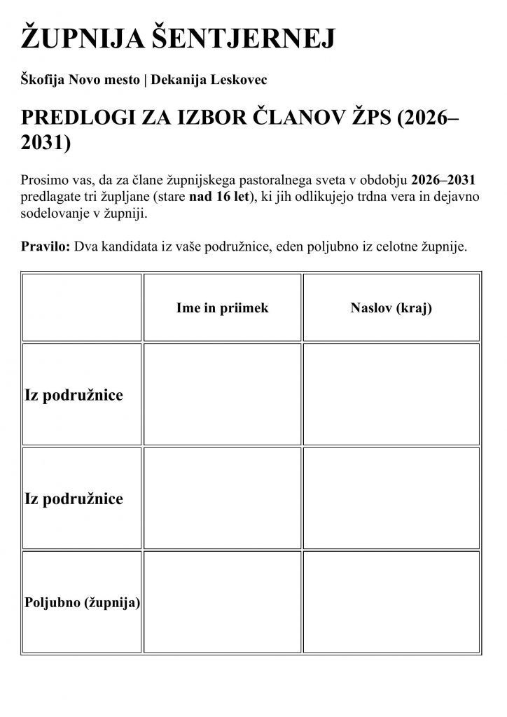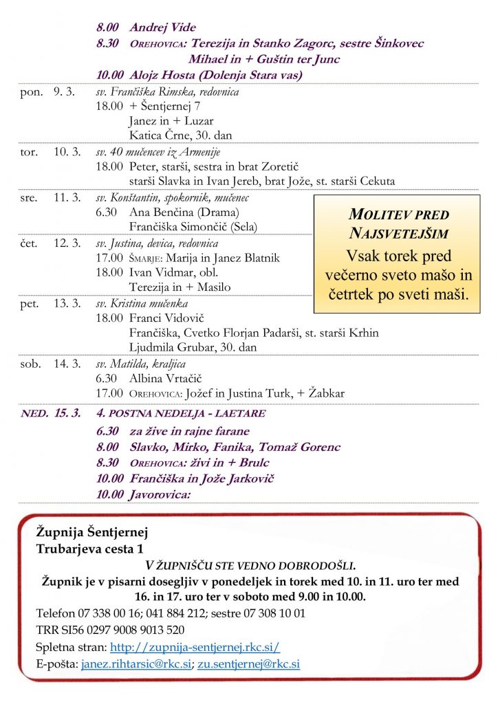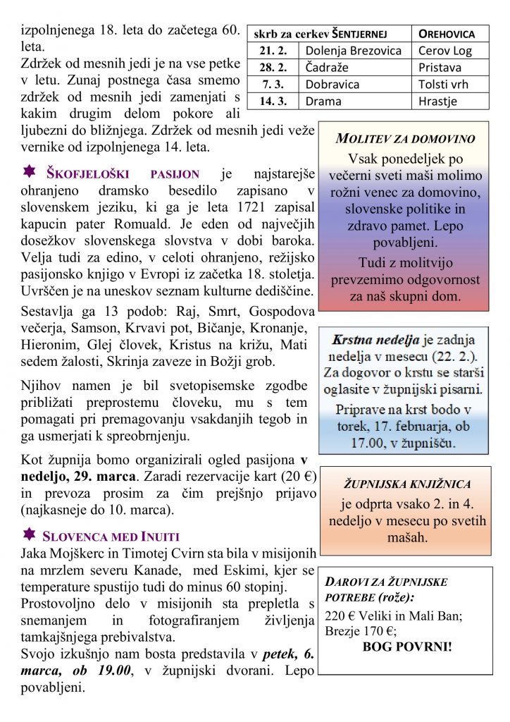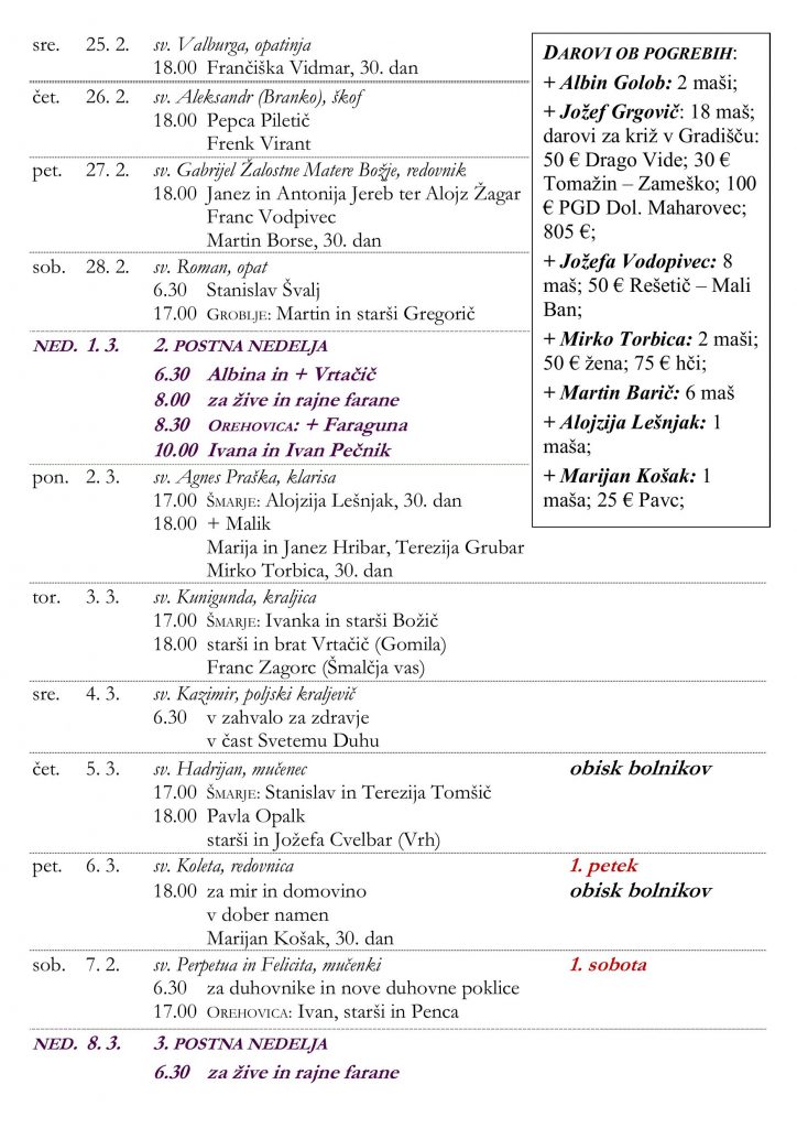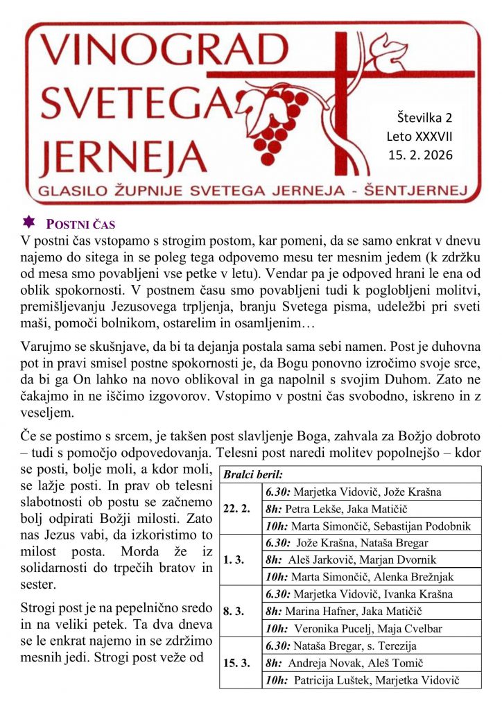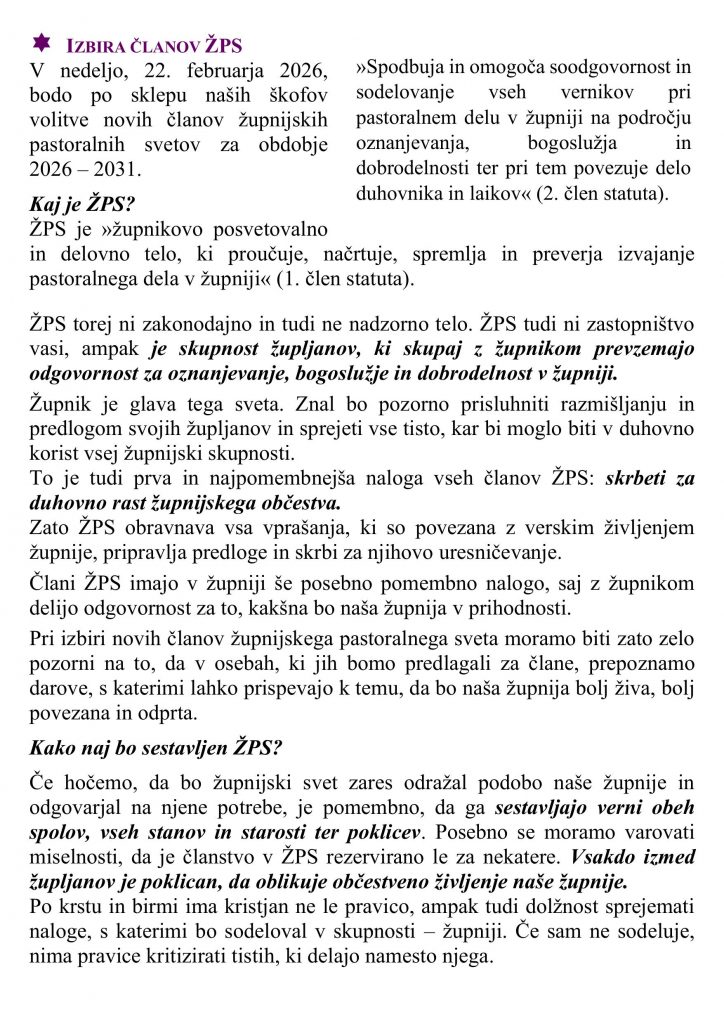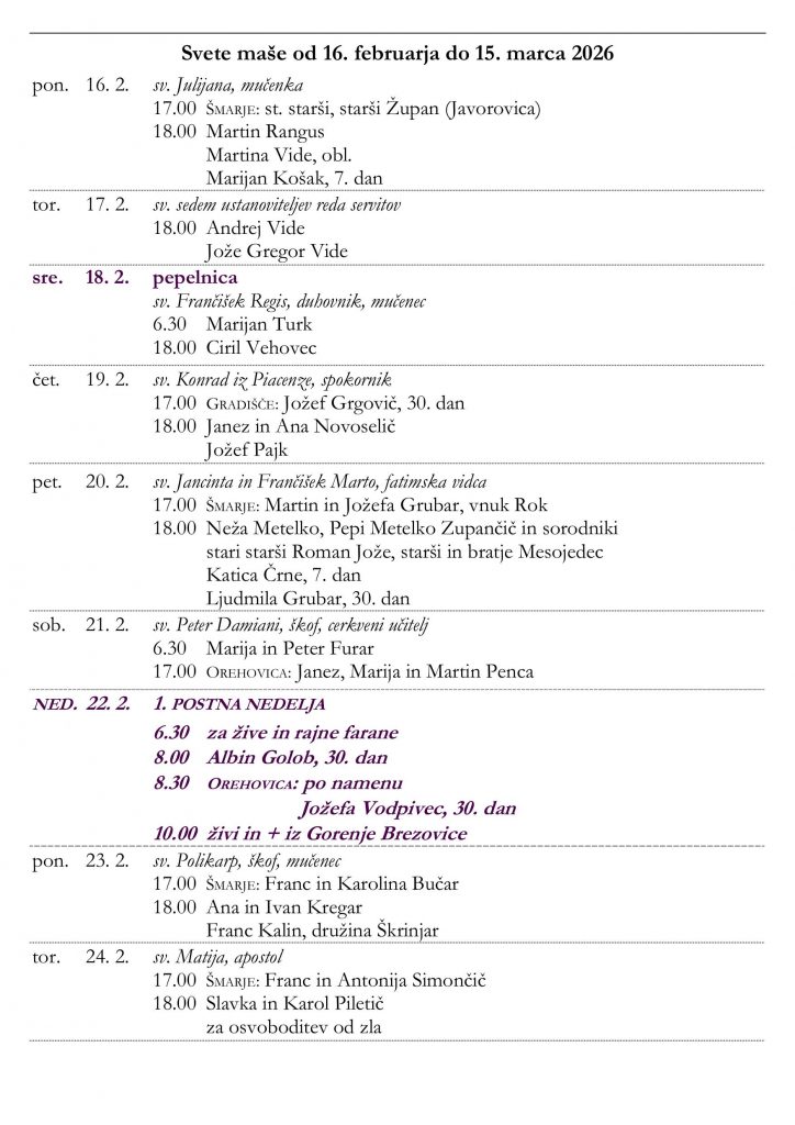 • nedeljska oznanila 15. 2. 2026