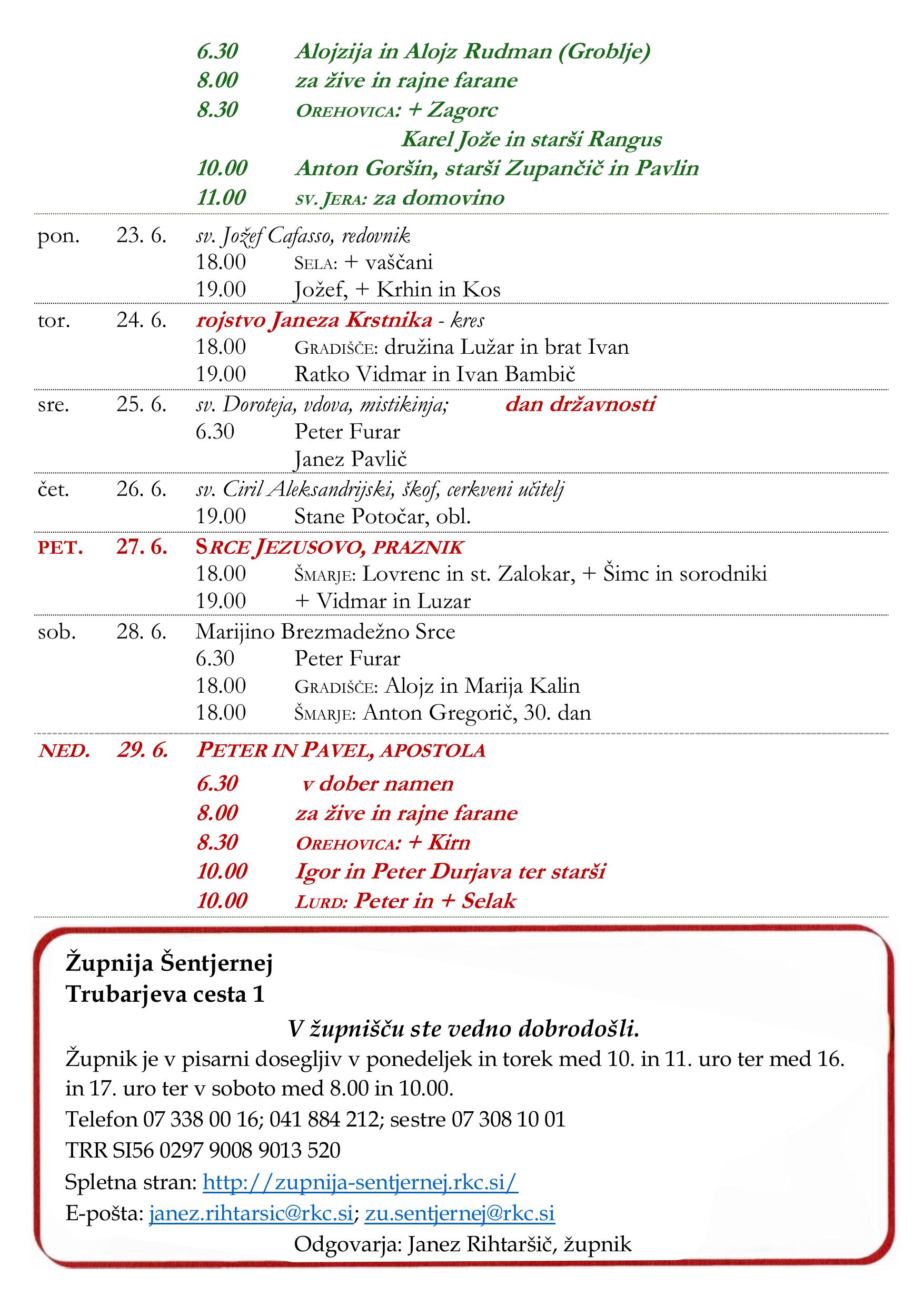 • nedeljska oznanila 23. 11. 2025