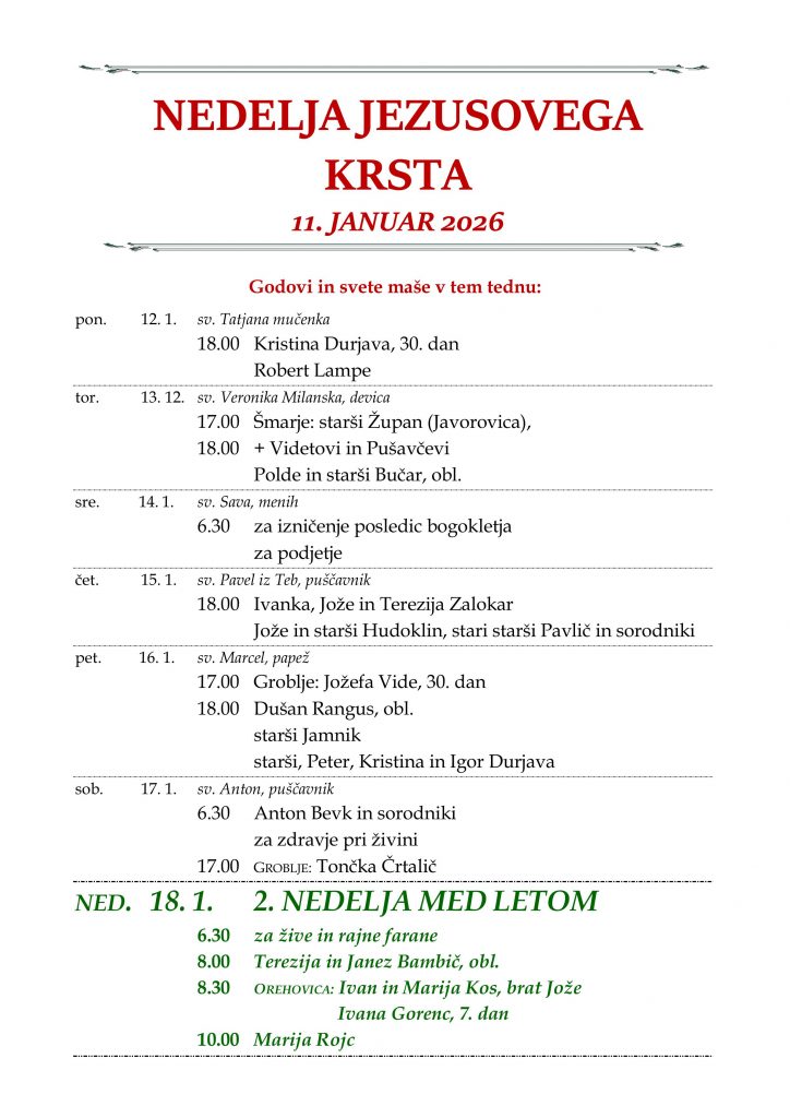 • nedeljska oznanila 18. 1. 2026