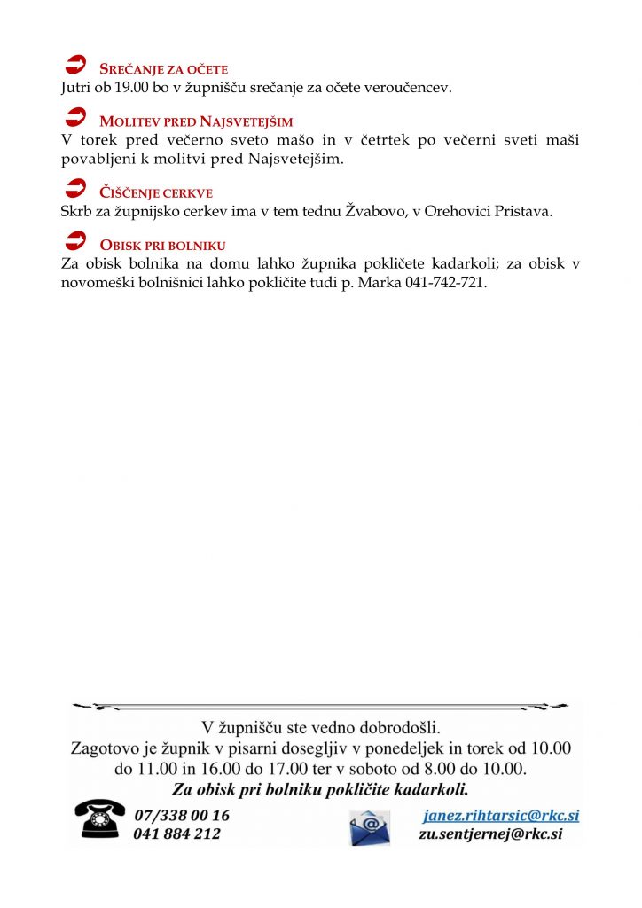 • nedeljska oznanila 25. 1. 2026