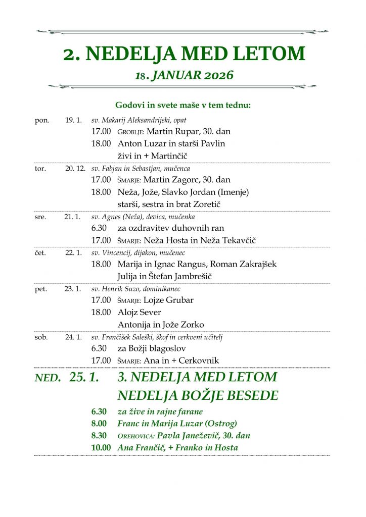 • nedeljska oznanila 18. 1. 2026