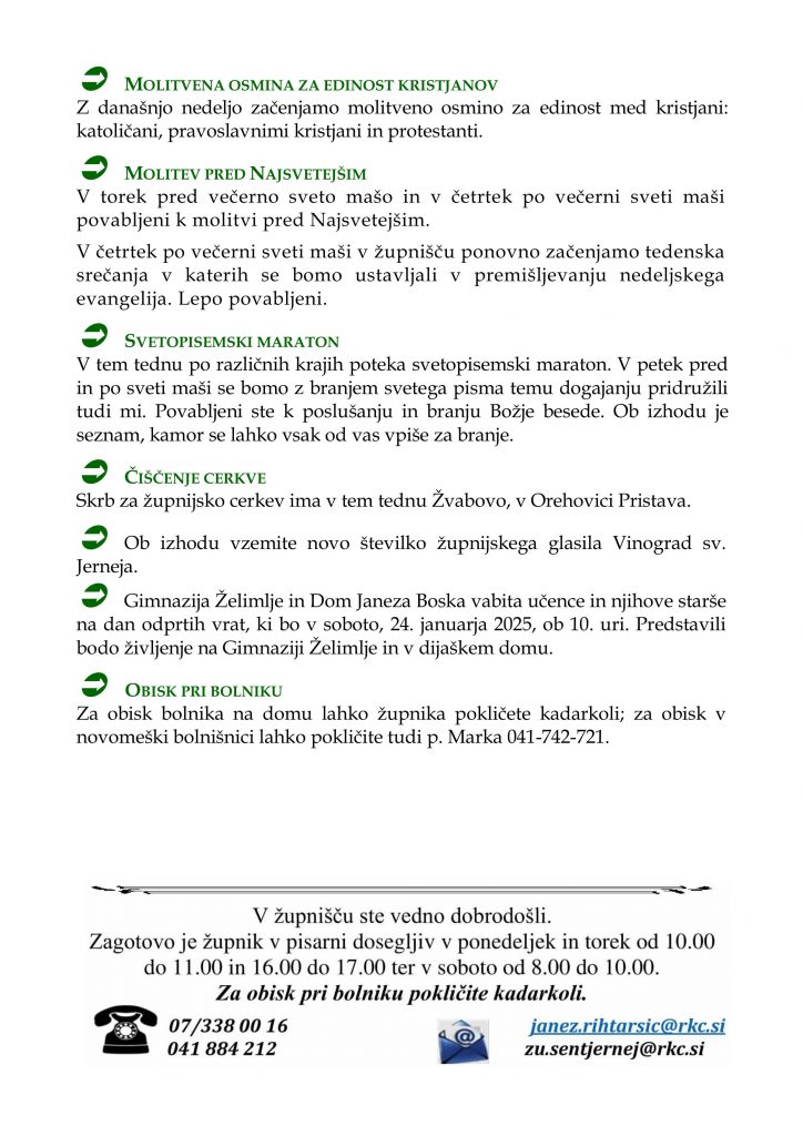 • nedeljska oznanila 25. 1. 2026