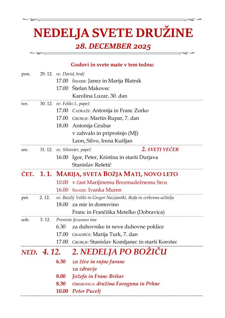 nedeljska oznanila 28. 12. 2025